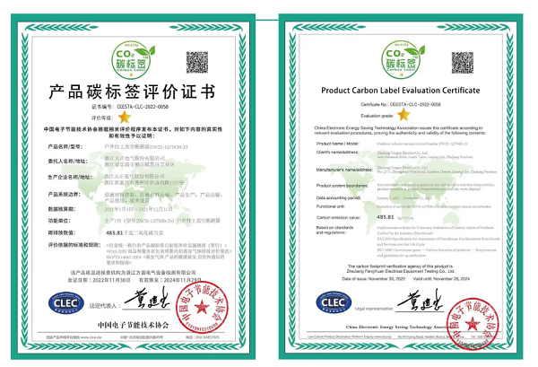 此次碳标签评价表明,k1体育电气生产的户外柱上真空断路产品,在碳排放大数据方面按国际通行惯例推进,并具备一定的优势,对促进产品全供应链的温室气体减排,达成“双碳”目标具有积极作用。此外,k1体育还获中国电子节能技术协会颁发的低碳产品供应商证书。